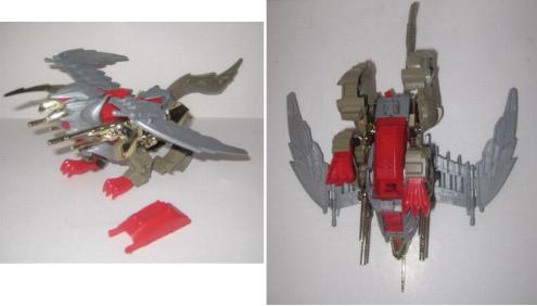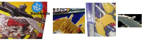 An interesting note is that the model pictured on the box has the inner part of the wings on backwards. The long tip of the cannon which should be forward facing is backwards. Below is a comparison with the other releases regarding wing position.