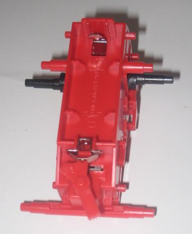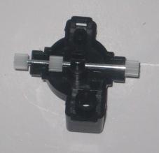 Three gears are then fitted around the shaft, and top piece is snapped in place.