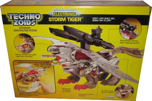 Produced by Kenner in 1994, this is the second incarnation of the Zoid known as Battle Cougar titled "Storm Tiger". Battle Cougar was originally an OJR release and part of the Grade Up series. Battle Cougar is a Griffin Type Zoid that is capable of both land and air combat. It has an impressive variety of weapons which can only be enhanced by the ability to mount additional weapons via the grade up port on the unit's back.