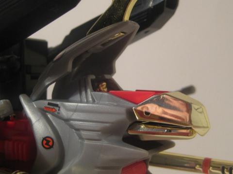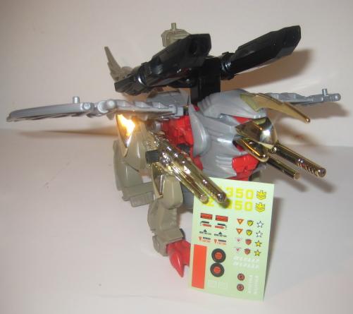 The horn is then placed on the top of the head, and the cockpit situated, The pilot is seated and the Grade Up Bar or Power Emblem is also placed.