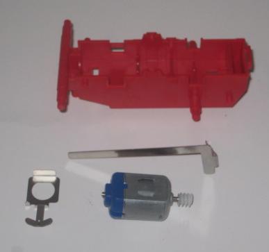 The first step in the build is placing the two metal battery contacts inside the hollow body cavity, which is then followed by placing the actual motor on the top.