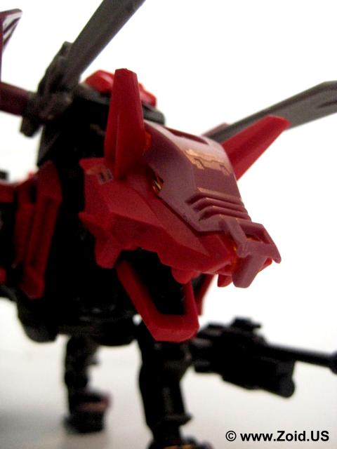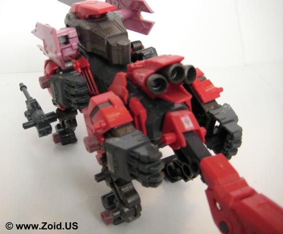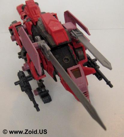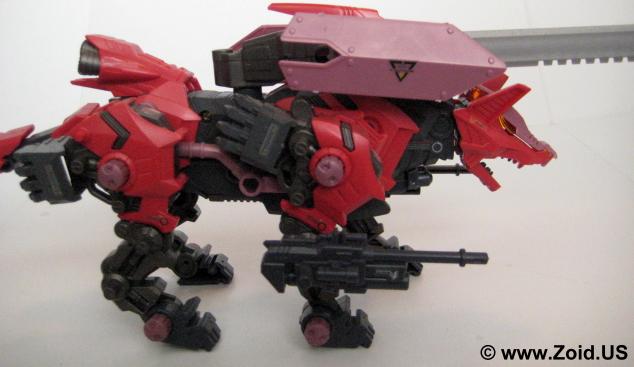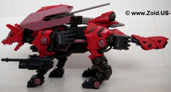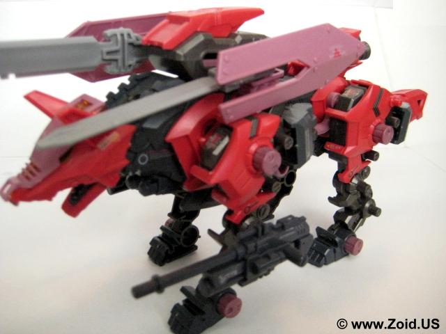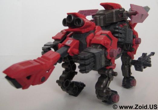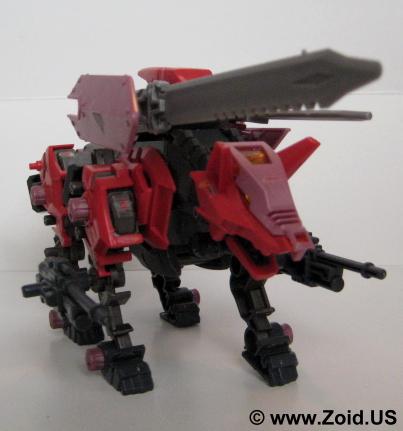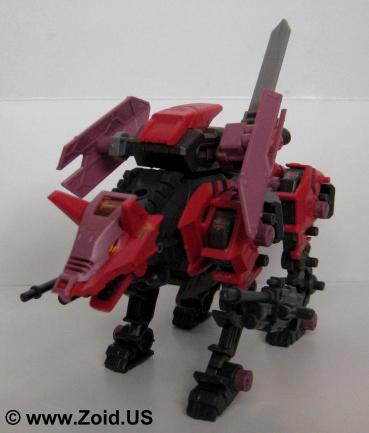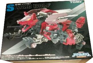 Sword Wolf was released in early 2005 and was the seventh Zoid created from the Genesis line. Colored in red, black, and grey, the Sword Wolf has a specific upgrade unit known as the "Bio Crusher". The Bio Crusher consists of a single blade along with a shield that took the place of either one of the normal Hack Blades. The Genesis Sword Wolf was the first, and last release and we did not see the planned limited version that would have been re-colored as well as come fully equipped with both the Bio Crusher and Ra Kan pilot figure.