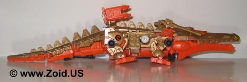 Originally created to replace Aquadon and Furolesios by the Republic, Barigator is a crocodilian type Zoid. It moves best on flat ground, or in the water due to its low center of gravity, this Zoid can easily become "high centered", and the pilot must be conscious of the oncoming terrain. Just like the reptile this Zoid is modeled after, Barigator is known to wait, submerged near the shore just under the waters surface and successfully ambush oncoming and unsuspecting enemies. Barigator is equipped with a powerful set of jaws that allow it to literally chomp a small / small-medium sized Zoid in half. In addition to the "Bite Jaws" the tail of any Barigator is a powerful weapon able to effectively smash into an enemy causing considerable damage. To round out the arsenal, Barigator is equipped with a 4 shot surface to air missile launcher mounted strategically on its lower back, and two 20mm beam guns for lighter duty.