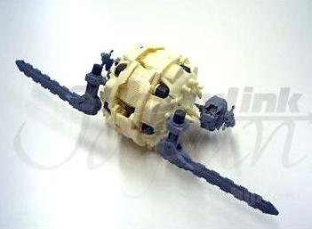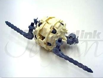 We can see some major differences starting with a second set of elongated front blades. This change would have possibly prevented the roll over issue mentioned earlier. The cannons also look as if they were designed from the concept art and are actually made of two different pieces. To me, the colors do not look like final versions but rather similar to test plastic used in prototyping. In addition to the spotting on HLJ this version was seen on another site YesAsia.com. The YesAsia.com website utilized the same pictures, but seems to have corrected the name which was now: "Gravied Valga". An odd name as the term "Gravid" is defined as "Carrying developing young or eggs", and is highly used in entomology which would make sense as we are dealing with a giant isopod. Strange to think of a pregnant pill bug rolling around blasting it's cannons in a war torn environment. Both sites reported a release date of February 28th of 2009. No one has found the Gravied Valga to date, and it's highly likely it will remain a prototype mystery for years to come.