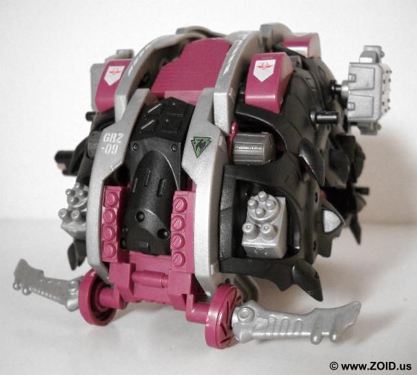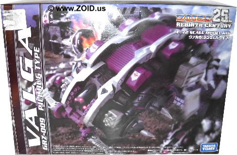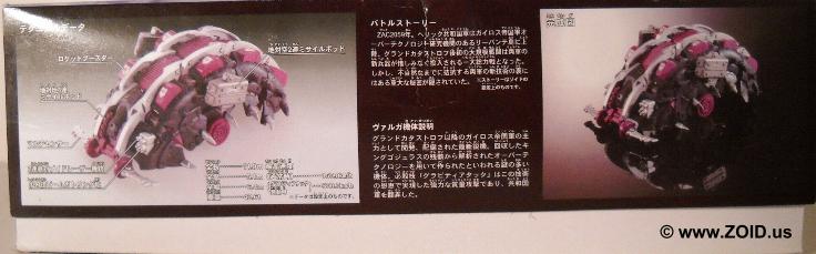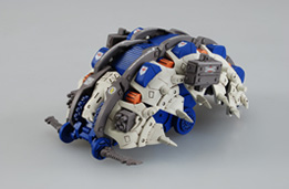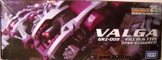 Designated as GRZ-09 the pill bug typed Zoid deemed "Valga" is a very intriguing Zoid. Although at this point we do not have a clear background on the unit we can assume it must have been more of a stealth type with it's very minor front mounted cannons and it's thick and heavily spiked armor. Valga features a very prominent vintage Guylos logo on the cross bar beside the cockpit. It is said that this unit was used by both the Empire and Republic, and a valid theory (taking the Rebirth Century time period into consideration) is that the Valga may have been the pre-cursor to the Gusatv as they both represent isopods and were used by both Empire and Republic.