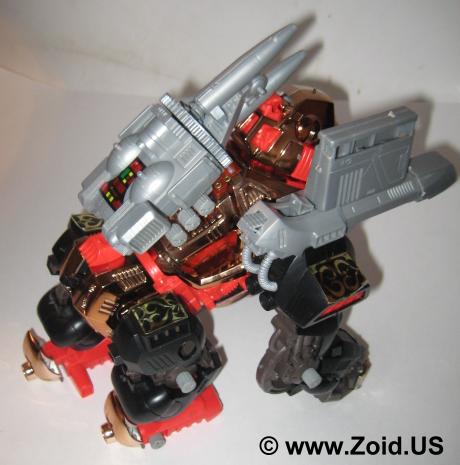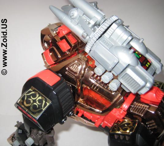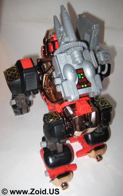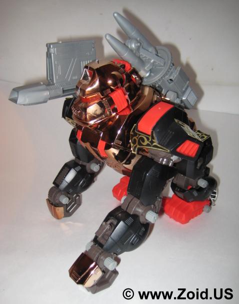 Iron Kong is nothing short of delightful to build. Again the engineering on this piece is amazing and in my mind still competes with the toy releases of today. The build is relatively short, with the majority of the pieces being larger. When turned on, Iron Kong moves forward in true ape like fashion with it's head turning, missile pack rotating, and eyes blinking. Price range varies depending upon release, and an example of a complete Iron Kong MK II Ltd can fetch upwards of 4,000 US. Iron Kong is a fun build and one that's not to be missed by both the average and the avid fan. Below is the Zoids 2 Version. The color of the chrome on this unit is very copper. As with all Zoids 2 models the tribal and celtic stickers make an excellent accent, and this piece is probably one of my favorite versions of the Iron Kong.