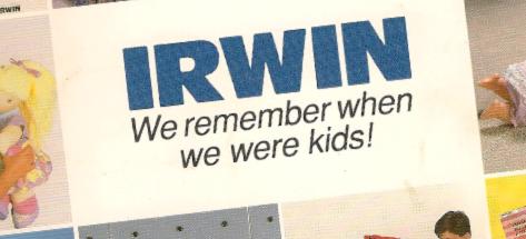 IRWIN was started in 1926 as an importer and distributor of dry goods and clothing. The company was formed in a house owned by a couple with the last name of Irwin. Originally the business sold souvenirs business eventually became so good that IRWIN started to sell wholesale to many retail companies. The operation expanded in size and soon required a warehouse. The Irwin's moved their operation to a warehouse at the west end of Toronto, and began to focus solely on toys. After a few years, the Irwin's two sons came aboard as managers, and went on to become full fledged owners. It was not until the 1950's that both son's decided to add toys to Irwin's strictly souvenir line up. It was not until 1984 that Irwin began to developed their own toys in house. Probably the most remembered Irwin developed toy was the "Pound Puppy".