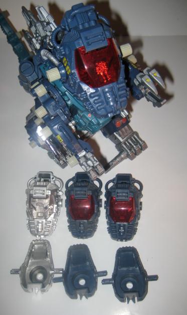 Probably due to a lack of proper assembly knowledge it makes for a nice oddity. Techno Zoid Zilla has green eyes and the same sticker sheet as the Zoids 2 version. The piece I have did not come with stickers.