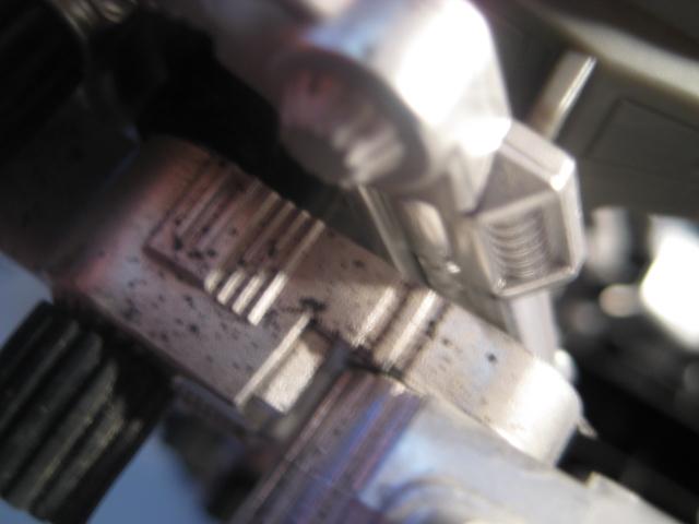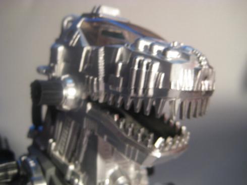 The chrome on TZ Zoidszilla has a dull finish. The mold also look very tired, with many a dent and scratch on the inside. The odd thing about this piece is that it appears as if the plastic underneath is black. It's not the greenish white color that usually resides under the surface of Zoids 2 and the chrome almost looks as if it were sprayed on. This is most obvious under the top half of the head.